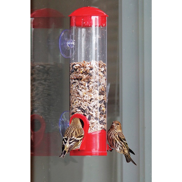 The Stokes Select Songbird Window Tube Feeder. The feeder mounts to your window with durable, heavy-duty suction cups, so that you can observe bird behavior and feeding habits from the comfort of home. The Songbird Window Tube feeder features 2 perches designed to be parallel with your window, so visiting birds are always in view. It's the ideal bird feeder for fostering children's sense of wonder and sparking their curiosity about nature and wildlife. The Songbird Window Tube Feeder gives you an intimate birding experience like no other.