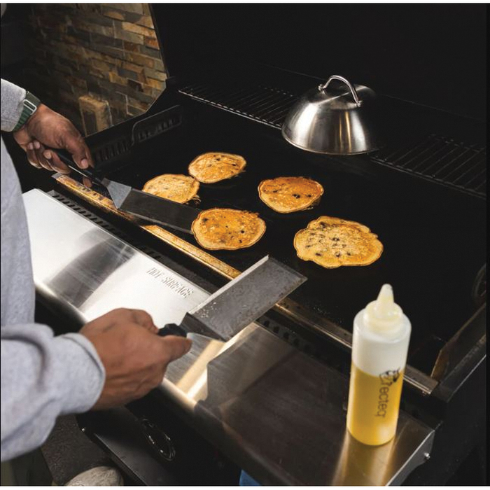 Take your griddle adventures to the next level with our griddle tool set. Includes griddle scraper, squeeze bottle, cast iron grill press, griddle dome and two stainless steel griddle spatulas. Ideal for use on your Recteq flat top griddle or Recteq SmokeStone.